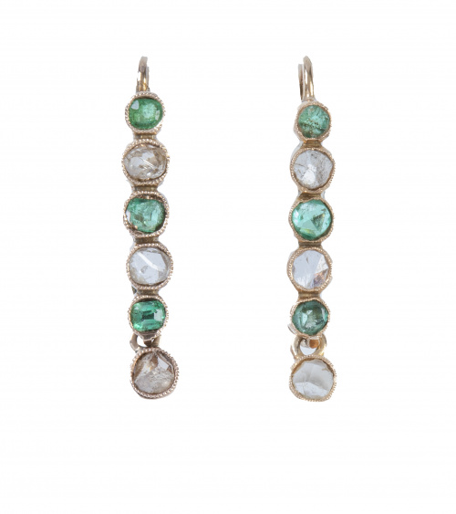 Pendientes largos S. XIX con esmeraldas y diamantes alternos en línea de chatones