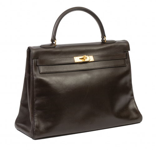 473. Bolso KELLY de HERMÈS 35 en piel marrón oscuro Box Havane