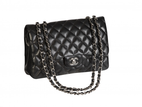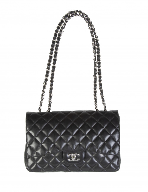 Bolso CHANEL 2.55 tamaño 30 cm, en cuero color caviar