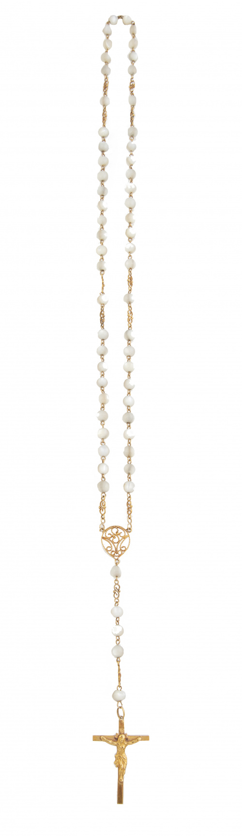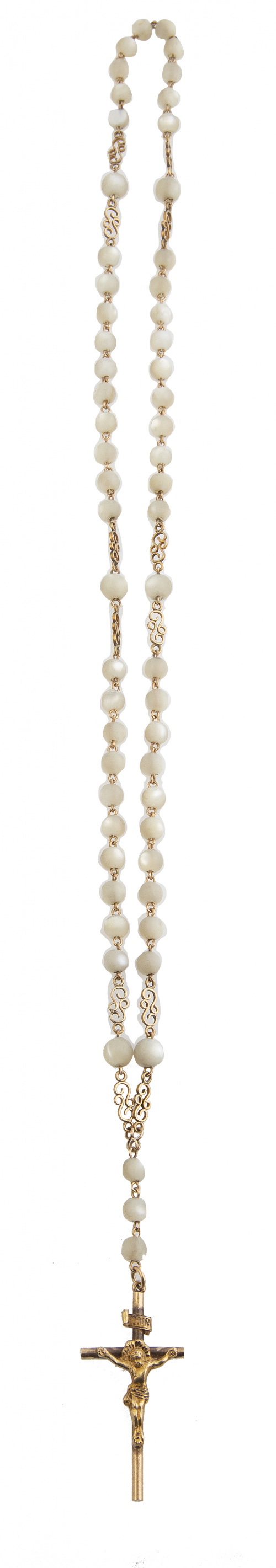 Lote de dos rosarios de pp. S. XX en oro amarillo de 18K, con cuentas de nácar