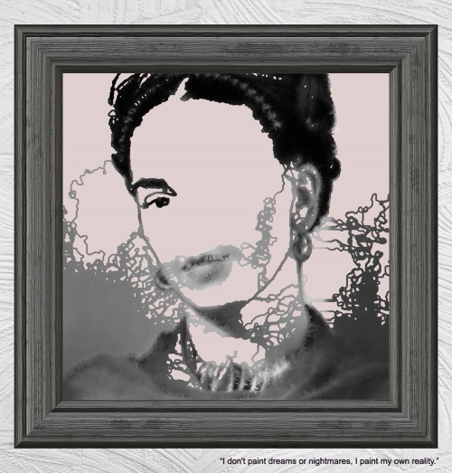 "Frida Kahlo" escrita en JavaScript, con logaritmos, que definitivamente la convertirá en una obra de arte única y animada, al leer los datos de color de cada píxel y alterar su curso en función de un conjunto de reglas configurables.