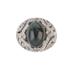 Home / SUBASTA JUNIO 2022 / Sortija con rubí oval en montura Art-Decó de perfil cuadrado