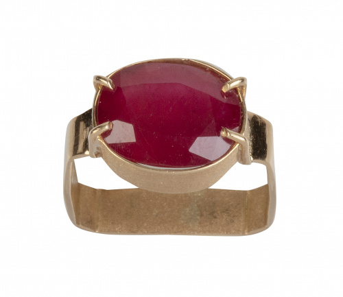 Sortija con rubí oval en montura Art-Decó de perfil cuadrado
