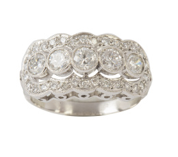 155. Sortija con rubí oval de 0,75 ct entre parejas de brillantes en los brazos de la montura