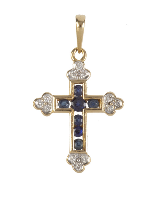 182. Cruz colgante de zafiros con brillantes como remate lobulado de los brazos