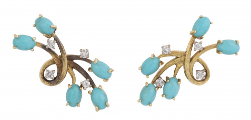 Home / SUBASTA JUNIO 2022 / Pendientes retro de oro y turquesas en diseño de bandas ent