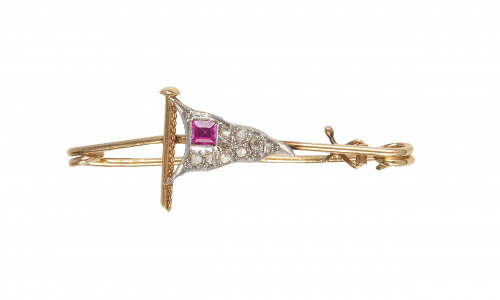 198. Broche alfiler con bandera de diamantes adornado con un rubí