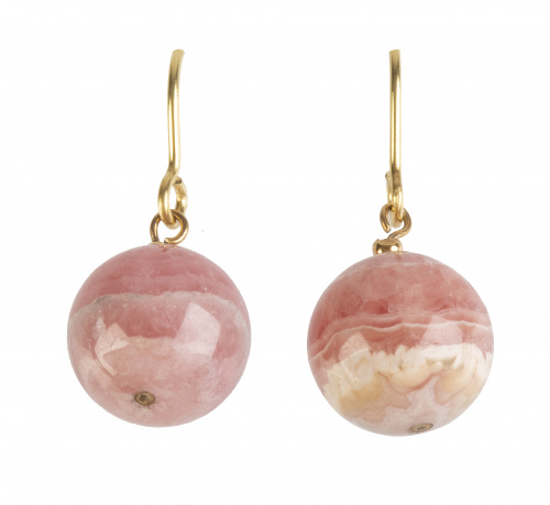 219. Pendientes largos con cuentas esféricas de rodocrositas y montura de gancho