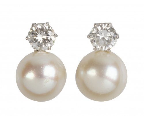 Pendientes tu y yo perla de intenso oriente y brillantes de 0,50 ct aprox color estimado H-I y pureza SI1