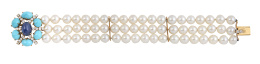 308. Brazalete ancho articulado completamente cuajado de cabuchones de zafiros azules, combinados con zafiros amarillos y brillantes.