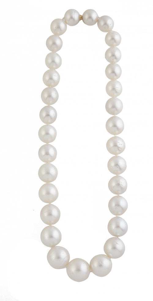 333. Collar de treinta perlas Australianas de gran tamaño, graduado hacia la parte central