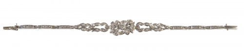340. Pulsera articulada con diseño de formas vegetales de diamantes, con un brillante central en la pieza principal