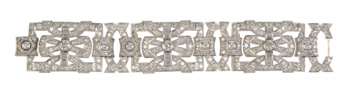 368. Brazalete Art-Decó de brillantes y baguettes firmado WALSER, con tres grandes centros de diseño geométrico articuados