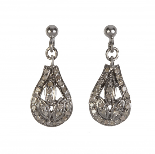 Pendientes S. XIX de diamantes que componen forma de gota con hoja interior