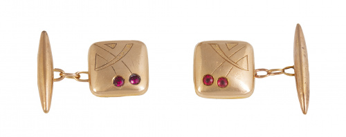 Gemelos cuadrangulares años 30 con rubíes sintéticos y decoración grabada