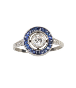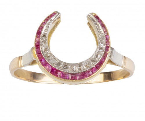 Sortija c.1910 con herradura de diamantes y rubíes calibrados
