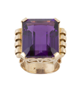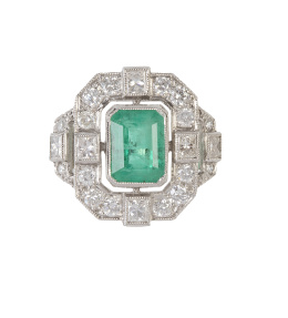 96. Sortija Art-Decó con banda de diamantes y ocho zafiros talla triangular