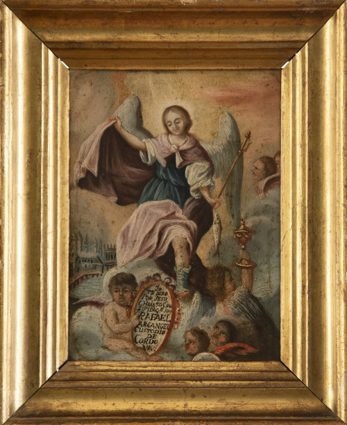 Inscrito: "Yo te juro por Jesucrito que soy Rafael arcángel custodio de Córdoba".