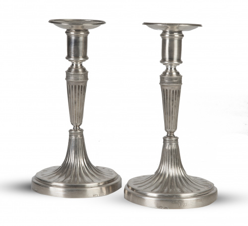 Pareja de candeleros Carlos IV en plata española punzonada.