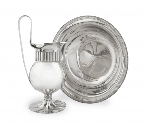 672. Jarra y palangana en plata en su color.