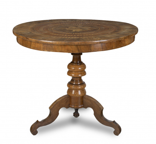 Home / SUBASTA JUNIO 2022 / Velador de madera de nogal con marquetería geométrica de ma