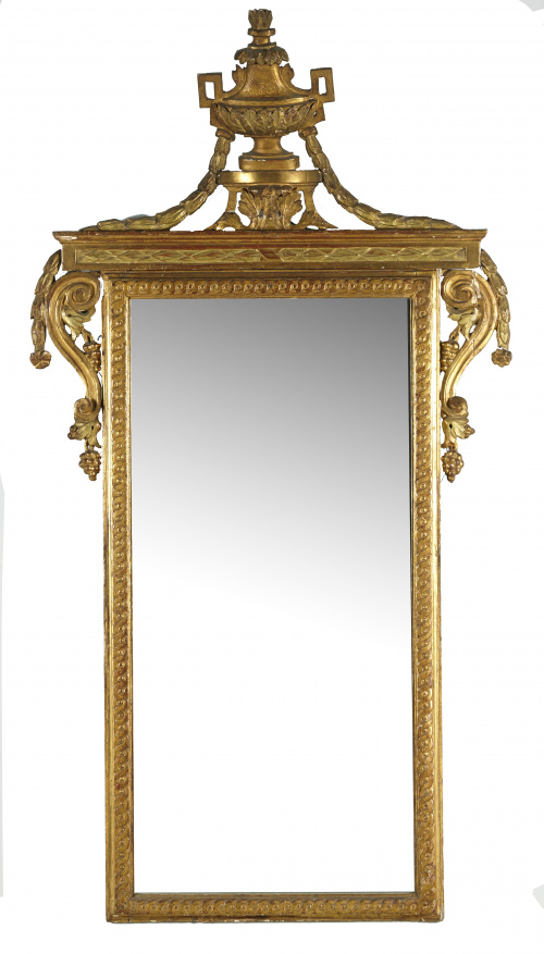 692. Gran espejo Carlos IV en madera tallada y dorada.