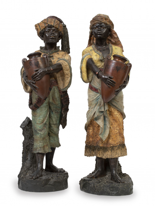 Home / SUBASTA JUNIO 2022 / Pareja de figuras orientalistas en terracota policromada.