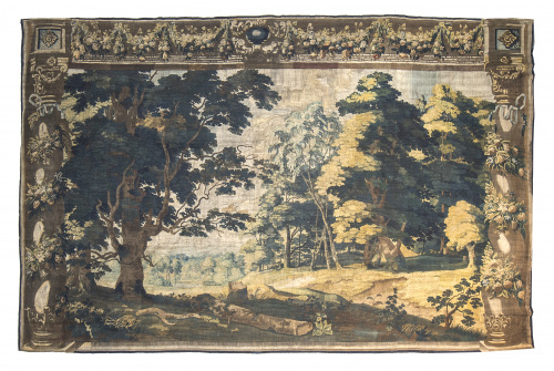 756. Tapiz en lana y seda de la serie de columnas y lazos.