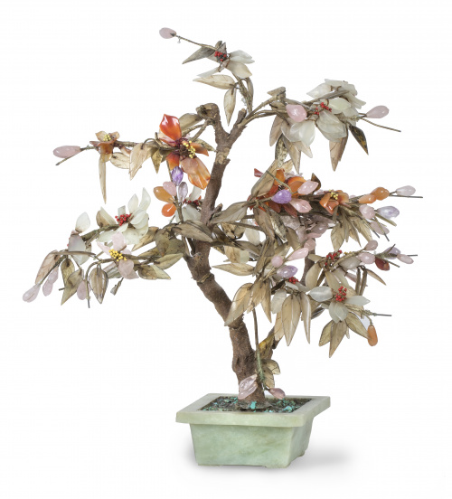 Home / SUBASTA JUNIO 2022 / Árbol de piedras duras, jade y coral.Trabajo chino, dinas