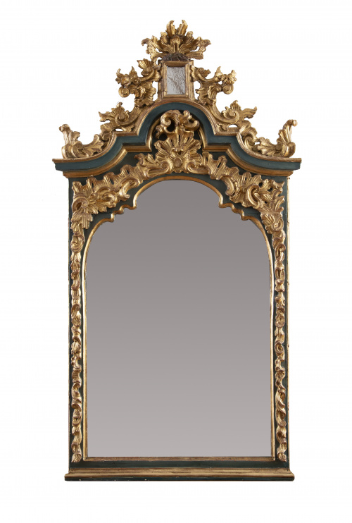Home / SUBASTA JUNIO 2022 / Espejo en madera tallada, policromada y dorada.Trabajo es