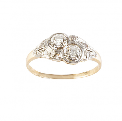 Sortija tu y yo Art-Decó con dos brillantes en banda calada