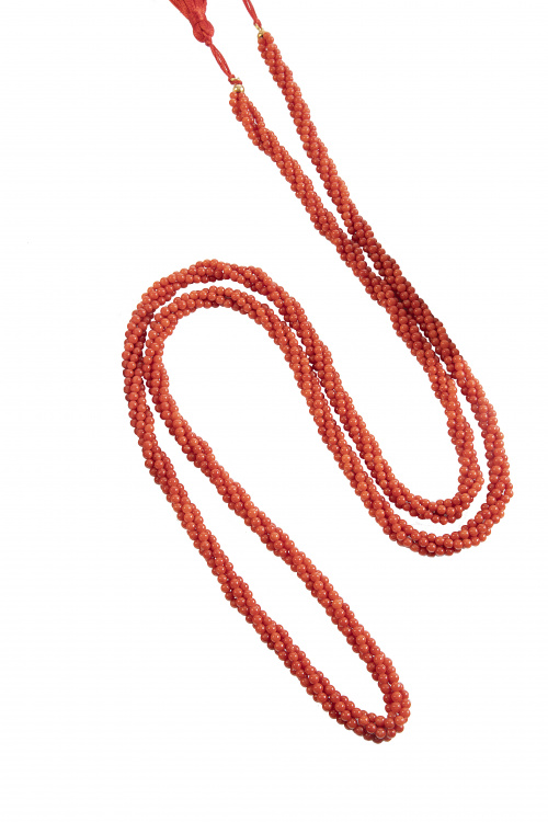 115. Sautoir de coral en malla tubular de cuentas esféricas