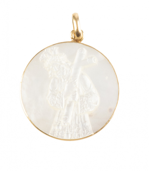 126. Colgante de nácar con Cristo portando la Cruz tallado
