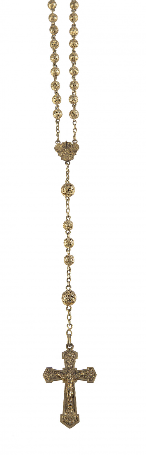 14. Rosario de pp. S. XX con cuentas de filigrana en plata dorada