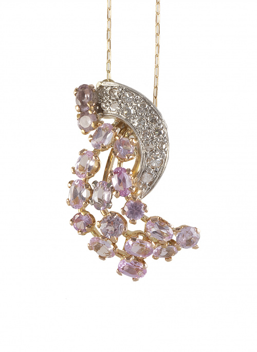 159. Pendentif con media luna de brillantes con estela de rosas de Francia