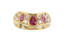 287. Sortija flor estilo Art-Decó con rosetón de brillantes y marco lobulado de zafiros calibrados