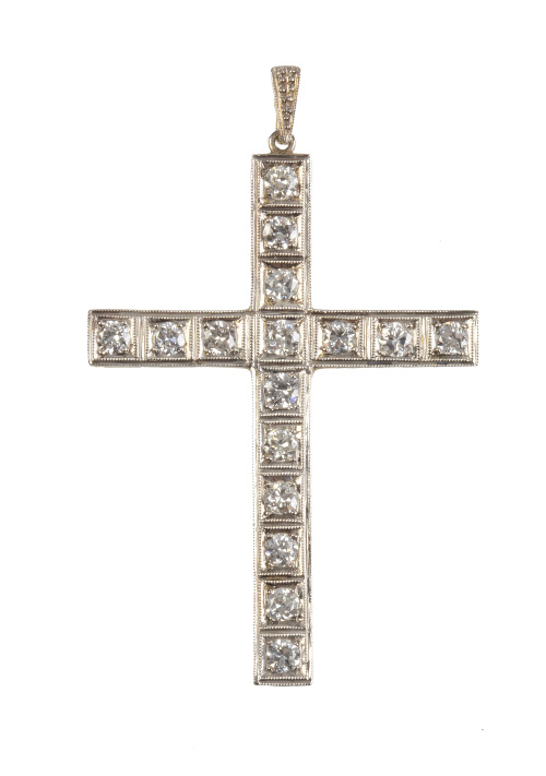 Broche-colgante de pp. S. XX con diseño de cruz de brillantes