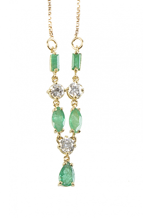 Collar con frente de esmeraldas de diferentes tallas alternas con brillantes