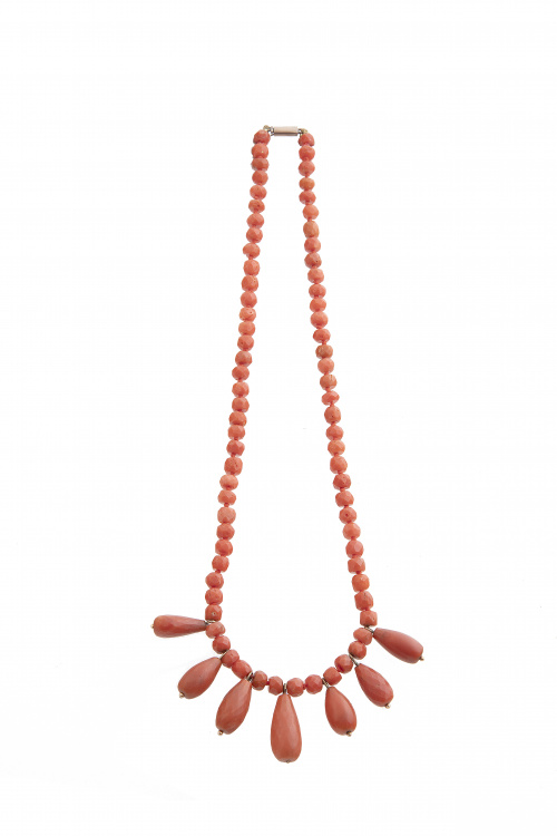 Home / SUBASTA OCTUBRE 2022 / Collar de coral S. XIX con cuentas facetadas y siete perill