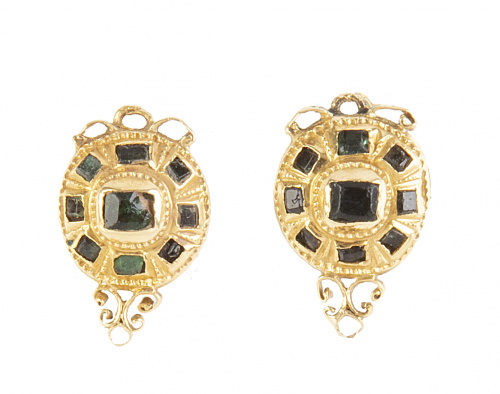 Home / SUBASTA OCTUBRE 2022 / Pendientes S. XIX en forma de botón con símil esmeraldas