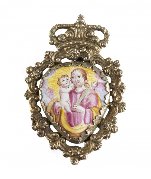8. Colgante devocional S. XVIII con esmalte de San Antonio y el Niño Jesús en esmalte polícromo
