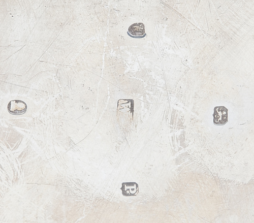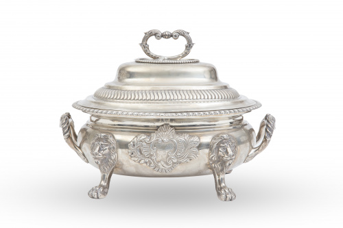 Sopera con tapa Jorge III de plata. Con marcas, marca frustra de platero W.