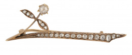 Broche años 50 con tres plumas, unidas en la base con aro de diamantes