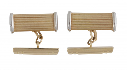 148. Gemelos en forma de columnna grabada de oro amarillo mate con bases en oro blanco