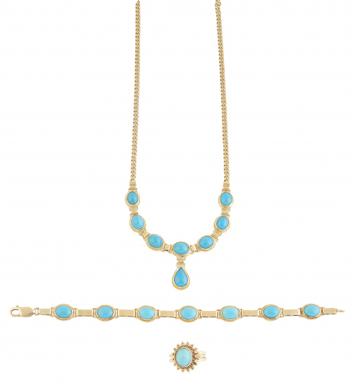 Conjunto de collar, pulsera y sortija de turquesas
