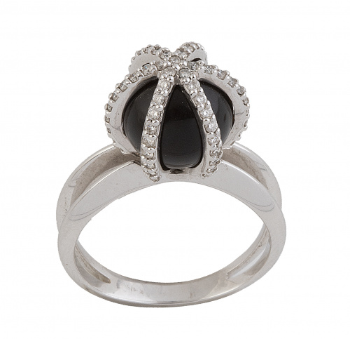 243. Sortija con esfera de ónix en jaula esférica de brillantes