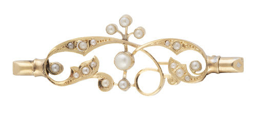 Broche de pp. S. XX con perlas de cristal en líneas de ramas entrelazas