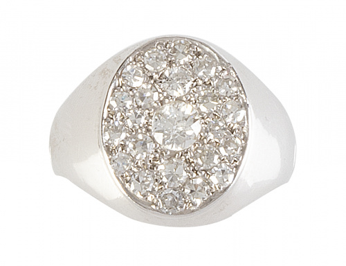 274. Sortija tipo sello oval con frente cuajado de brillantes