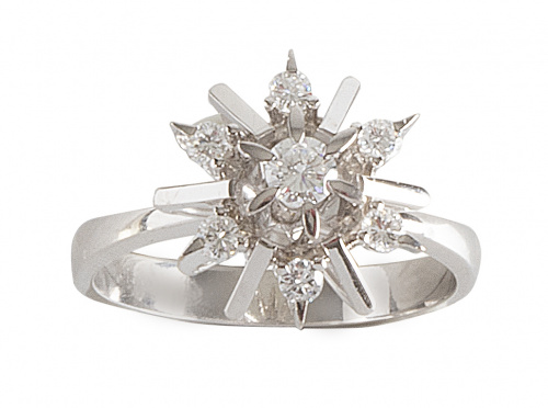 291. Sortija rosetón de brillantes en montura de garras geométricas elevadas