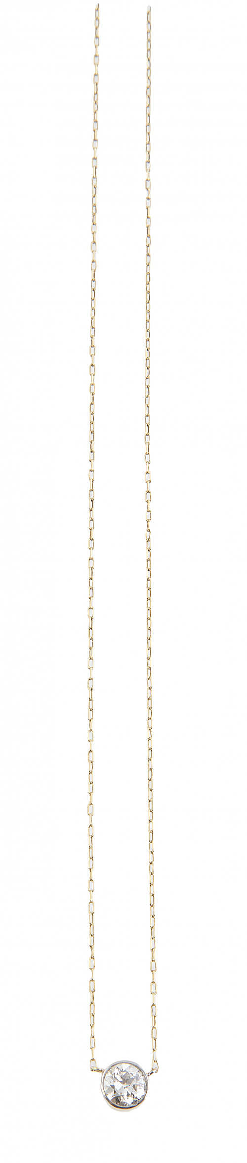 Conjunto de pendientes dormilonas de 0,30 ct aprox y colgante con brillante de 0,90 ct aprox en montura de chatón